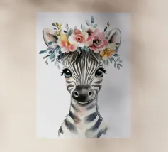 Baby zebra acquerellata e illustrazione floreale.