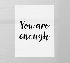 Sfondo beige con scritte verde chiaro: "Sei abbastanza, così come sei".