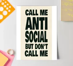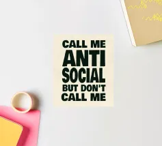 "Call Me Antisocial But Don't Call Me" cattura lo spirito di tranquilla indipendenza con una strizzatina d'occhio. La tipografia minimalista incontra un umorismo asciutto - un pezzo per tutti coloro che apprezzano la pace, la solitudine e l'energia sociale selettiva. Semplice, audace e perfettamente relazionabile in un mondo che non smette mai di chiamare.