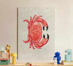 Linocutstyle red crab design