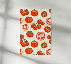 Il design allegro e colorato presenta un motivo di pomodori fresco e appetitoso.