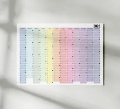 Un modello di disegno personalizzabile per il 2026 (scritto a mano)! Scegliete il vostro colore preferito nell'opzione del colore di sfondo e i campi si riempiranno automaticamente. Scegliete un contrasto di colori sufficiente a far risaltare bene il calendario. Attenzione: il modello di design non è adatto ai formati di stampa più piccoli. Si consiglia di scegliere almeno un formato A3: più è grande, più sarà efficace. Se si prevede di scrivere a mano in seguito, scegliere una carta adatta. È possibile personalizzare anche il titolo. Divertitevi a personalizzarlo!