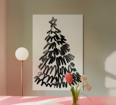 Celebrate l'essenza del Natale con questo abete stilizzato avvolto in un audace nastro cremisi. Dipinta con pennellate espressive, quest'opera d'arte minimalista dona un'atmosfera calda e artigianale a qualsiasi parete moderna.