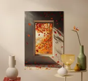 Un momento sospeso nel tempo: una finestra incorniciata nella pietra, foglie autunnali che scivolano dolcemente all'interno e la luce del sole che traccia ombre delicate sulla parete. "Autumn Window" è allo stesso tempo minimalista e coinvolgente, in grado di bilanciare il calore dei colori stagionali con il ritmo tranquillo delle foglie che cadono. Perfetto per interni moderni, per accenti stagionali o come pezzo contemplativo che cattura la fugace poesia dell'autunno.