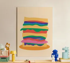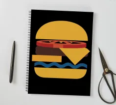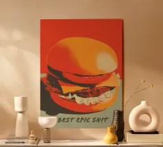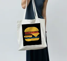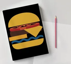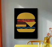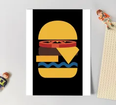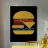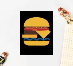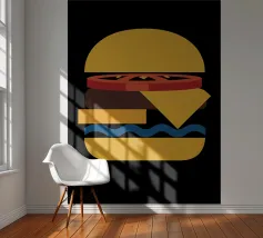 Illustrazione geometrica minimalista di hamburger su sfondo nero.