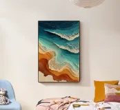 Dove il mare incontra l'anima. "Tide & Texture" è una celebrazione stratificata della bellezza costiera: onde astratte che rotolano su rive baciate dal sole, il tutto reso in uno stile ricco e tattile che evoca la carta fatta a mano e l'acquerello. Questo pezzo fonde la calma dell'oceano con il calore dei toni della terra, perfetto per elevare gli interni moderni con un senso di flusso e di radicamento. Ideale per soggiorni, camere da letto o spazi creativi che desiderano serenità e profondità visiva.