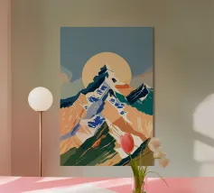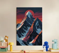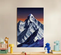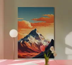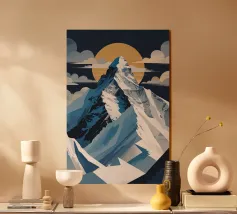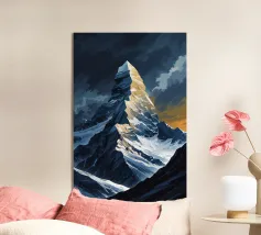 Un'accattivante interpretazione fantasy del Monte Everest circondato da scintillanti frammenti di cristalli traslucidi sotto le vibranti tonalità dell'aurora boreale. Quest'opera d'arte offre un contrasto ipnotico tra gli elementi spigolosi e i morbidi gradienti delle aurore. L'opera cattura lo spirito di avventura e creatività, trasformando la montagna più alta del mondo in una scena di meraviglia e mistero. Un'aggiunta perfetta a qualsiasi collezione d'arte che celebra paesaggi surreali e fantasiosi.