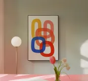 Questo poster d'arte moderna mostra forme sovrapposte e arrotondate in colori vivaci come il blu, il rosso, l'arancione, il rosa e il giallo, apparentemente fluttuanti e interconnesse. L'effetto trasparente dei colori crea profondità e leggerezza allo stesso tempo. Ideale per stanze minimaliste, uffici creativi o come elegante elemento di spicco nella parete della vostra galleria.