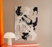 Gli schizzi di vernice unici e le linee dinamiche creano un senso di movimento e spontaneità, rendendo questa illustrazione un vero e proprio richiamo visivo. Inoltre, il design caotico ma armonioso conferisce un senso di libertà e creatività allo spazio.