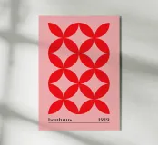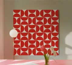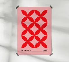 Un'audace stampa d'arte astratta con uno sfondo rosa tenue e suggestive forme geometriche rosse. La composizione minimalista fonde calore ed energia con un tocco artistico moderno, creando un accento vibrante ed elegante per qualsiasi ambiente. Perfetto per gli interni contemporanei, gli amanti del design e gli appassionati di colori audaci. arte astratta rosa rossa, poster di forme geometriche, stampa moderna minimalista, opera d'arte dai colori audaci, decorazione murale contemporanea, design geometrico rosso, sfondo rosa tenue, composizione astratta moderna, arte murale a blocchi di colore, stampa artistica per la casa, poster di ispirazione retrò, arredamento moderno elegante, geometria minimale.
