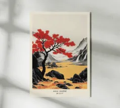 Trovate la serenità nella nostra opera d'arte che raffigura acque calme e un ramo d'albero da cui scendono dolcemente foglie rosse. Ideale per creare un ambiente tranquillo in casa o in ufficio, incarna tranquillità ed eleganza.