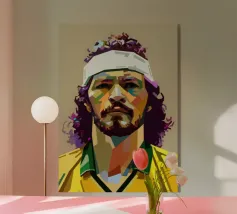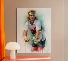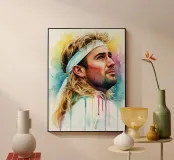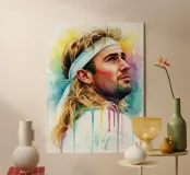 Andre Agassi, leggendario tennista, in un dipinto d'arte ad acquerello