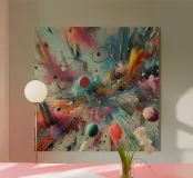 Immergetevi nell'affascinante mondo di questo impressionante dipinto, che combina l'energia dinamica dell'action painting con l'emotività dell'espressionismo moderno. Con i suoi tenui colori pastello e lo stile espressivo e leggermente surreale, cattura l'immaginazione e affascina lo spettatore. Questa opera d'arte dettagliata è perfetta per il soggiorno, la sala da pranzo, il corridoio o l'ambulatorio e crea un'atmosfera di creatività e ispirazione.