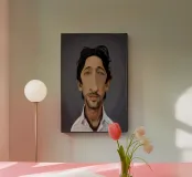 Caricatura umoristica del noto attore e produttore americano Adrien Brody. Una delle caricature realizzate per la serie Celebrity Sunday, in cui un personaggio famoso viene ritratto nell'arco di una giornata. L'idea è di mostrarli come in una fototessera per avere coerenza.