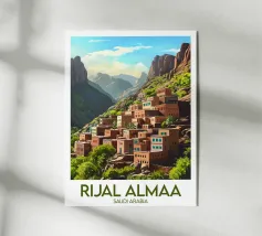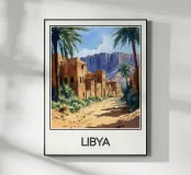Immergetevi nell'incantevole atmosfera della Libia con questo superbo poster. Un villaggio in rovina nel mezzo del deserto, circondato da maestose palme e montagne aride, perfetto per una decorazione murale autentica ed esotica.