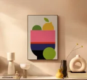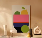 Un design minimalista con forme audaci e colorate che rappresentano limoni e lime in una moderna fruttiera. Perfetta per chi ama l'arredamento pulito e contemporaneo con un tocco di colore.