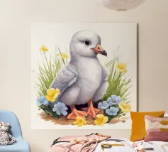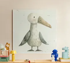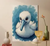 Un piccolo albatros, ancora neonato, il bellissimo uccello marino.... guarda intorno con curiosità prima di iniziare i suoi primi tentativi di volo. Un motivo ideale per tutti gli amici degli uccelli e dei bambini.