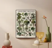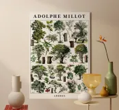 Un'intramontabile illustrazione d'epoca di Adolphe Millot che presenta diversi alberi con dettagli sorprendenti. Questa opera d'arte botanica unisce la precisione scientifica all'eleganza artistica, rendendola perfetta per gli amanti della natura, gli interni classici o gli spazi educativi. Un bellissimo pezzo d'arte di storia naturale che conferisce fascino organico e raffinatezza a qualsiasi parete.