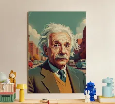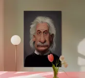 Illustrazione caricaturale umoristica del noto matematico e geniale scienziato austriaco Albert Einstein. Una delle caricature realizzate per la serie Celebrity Sunday, in cui un personaggio famoso viene ritratto in un giorno. L'idea è di mostrarli come in una fototessera per avere coerenza.