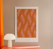 Questo moderno motivo geometrico è caratterizzato da linee diagonali e punti in rosa tenue e bianco, che formano rombi su un caldo sfondo color terracotta. Le linee disegnate a mano e gli elementi puntinati creano un'immagine dinamica e giocosa, perfetta per tessuti, carte da parati o design grafico. I toni della terra combinati con un design minimalista rendono questo motivo ideale per l'arredamento contemporaneo, le stampe di moda o i progetti di branding che cercano una miscela di calore e raffinatezza.