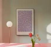 Motivo artistico astratto con sfondo lavanda e linee bianche stravaganti e labirintiche che ricordano un codice segreto. Questo disegno unico e creativo è perfetto per essere utilizzato in vari progetti grafici, tra cui sfondi di siti web, copertine di libri o disegni tessili, e piacerà a chiunque sia alla ricerca di motivi intricati e stimolanti.