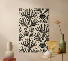 Il disegno ispirato alle alghe bladderwrack è davvero accattivante e costituisce una stampa perfetta. Con la sua ricca tavolozza blu inchiostro, evoca ricordi di mare. Questo pezzo è l'aggiunta ideale a qualsiasi spazio della vostra casa, aggiungendo un tocco di fascino costiero al vostro arredamento.