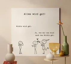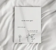 Le figure a bastoncino sussurrano conforto: linee fragili, promesse forti.