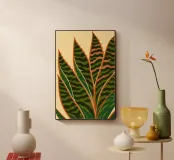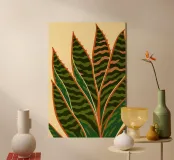 Portate un tocco di natura e di stile contemporaneo nella vostra casa con questo moderno poster sull'aloe vera. Ispirata alla raffinata eleganza delle piante grasse e al design di metà secolo, questa illustrazione digitale mostra foglie di aloe vera stilizzate con linee organiche e audaci e motivi terrosi.