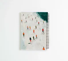 Quest'opera d'arte presenta un'espressiva veduta aerea di sciatori sparsi su una vasta pista innevata. Le pennellate ricche e tattili creano un senso di profondità e di movimento silenzioso, mentre accenti vibranti di arancione, rosso e verde punteggiano la pallida superficie invernale. Le piccole figure umane introducono ritmo e scala, trasformando una semplice scena di sci in un'esplorazione astratta di movimento, equilibrio e presenza. La composizione evoca una calma energia e la bellezza fugace dell'inverno, rendendola ideale per interni contemporanei e stampe artistiche di grande formato.