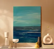 Questo paesaggio marino astratto cattura il movimento, la profondità e l'atmosfera dell'oceano in una forma moderna e senza tempo. Le strutture fluide e i colori sfumati ricordano l'acqua, il vento e la luce in continuo mutamento e trasmettono calma, vastità, nostalgia e libertà. L'immagine minimalista del mare crea un'atmosfera meditativa e si integra armoniosamente in spazi abitativi moderni, interni scandinavi o arredi minimalisti. Ideale per tutti coloro che amano l'arte astratta, i motivi marittimi e l'arte murale senza tempo.