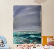 Questo paesaggio marino astratto cattura il movimento, la profondità e l'atmosfera dell'oceano in una forma moderna e senza tempo. Le strutture fluide e i colori sfumati ricordano l'acqua, il vento e la luce in continuo mutamento e trasmettono calma, vastità, nostalgia e libertà. L'immagine minimalista del mare crea un'atmosfera meditativa e si integra armoniosamente in spazi abitativi moderni, interni scandinavi o arredi minimalisti. Ideale per tutti coloro che amano l'arte astratta, i motivi marittimi e l'arte murale senza tempo.
