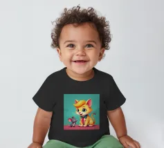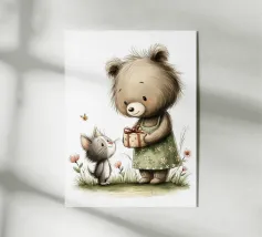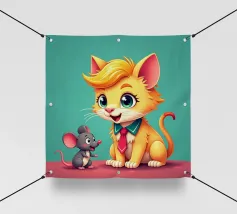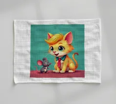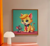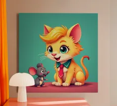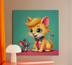 Il gatto ha fatto amicizia con il topo in una conversazione a base di miagolii, sbirciatine. Una bella illustrazione, ideale per i bambini e le camere dei bambini.