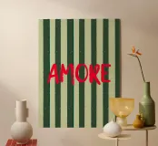 Questa stampa presenta la parola "AMORE" in caratteri rossi su uno sfondo a strisce verdi chiare e scure. Un'opera d'arte elegante, ideale come regalo per gli amanti della decorazione moderna, del romanticismo e dell'arte da parete ispiratrice - perfetta per salotti, uffici e occasioni speciali.