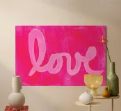 "amore" scritto a mano su uno sfondo dipinto di rosa/rosso