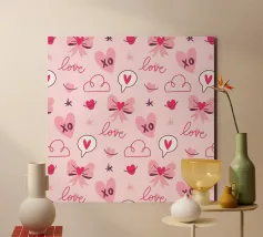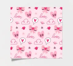 Un design delicato e romantico, perfetto per San Valentino, con cuori stilizzati, fiocchi rosa e soffici nuvole che si intrecciano armoniosamente. Le sfumature di rosa, dalle più chiare alle più intense, creano un'atmosfera dolce e accogliente, ideale per celebrare l'amore. Questo motivo elegante e giocoso aggiungerà un tocco di tenerezza a qualsiasi prodotto, rendendolo il regalo perfetto per chi ama la magia di questa festa.