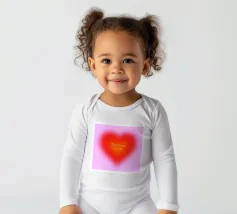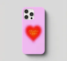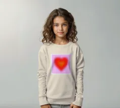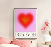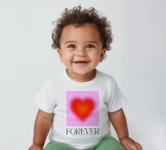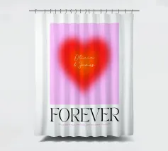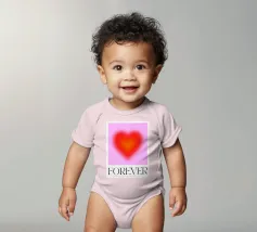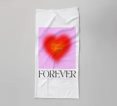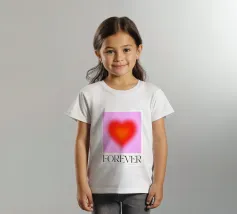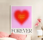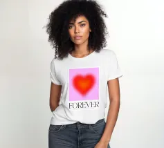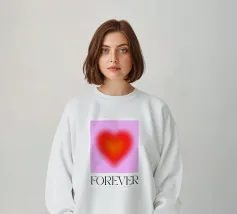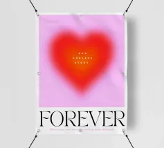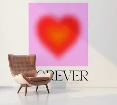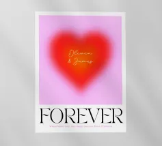 Grafica minimal astratta personalizzabile con cuore sfumato in rosso vibrante, arancione e rosa, con grande scritta 'FOREVER' in un carattere decorativo serif. Un'opera d'arte perfetta per celebrare l'amore, il giorno dell'amore, San Valentino e l'amore per i bambini. Per una coppia o una persona sola