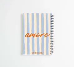 Scoprite il giocoso design "Amore celeste rosso". Questo design allegro ed elegante presenta la parola "amore" in un'audace scrittura rossa che attraversa elegantemente lo sfondo a righe.