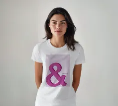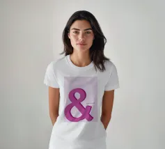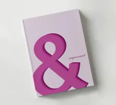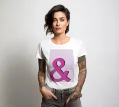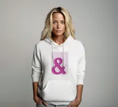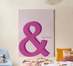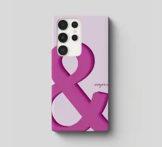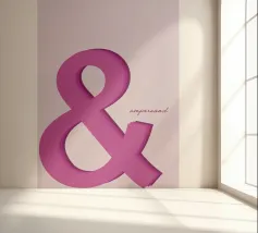 Bold pink ampersand symbol with a layered shadow effect on a soft pastel background, combining minimalism with playful typography.