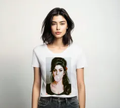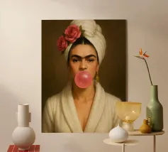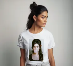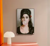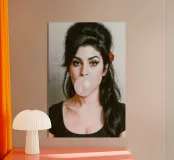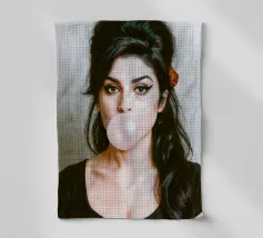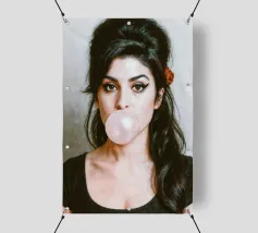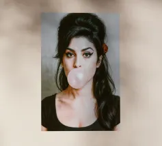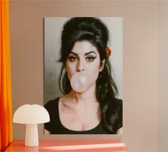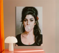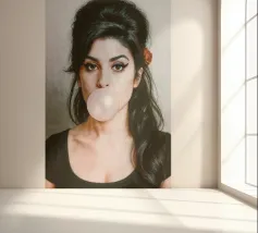 Inconfondibilmente Amy - con il caratteristico alveare, l'ala di eyeliner e una bolla di gomma da masticare rosa come dichiarazione silenziosa tra ribellione e vulnerabilità. Questo ritratto pop art iperrealistico combina estetica retrò e ironia moderna. Perfetto per i fan di Amy Winehouse, della cultura soul, dell'immaginario femminile forte e dell'arte da parete di stile.
