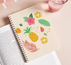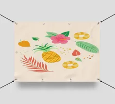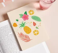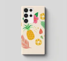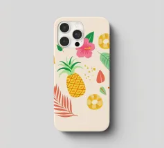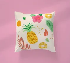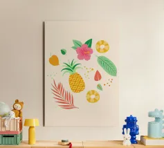 ananas foglie fiori fetta tropicale ibisco mango motivi petali steli verde frutti floreale arancione giallo botanico natura esotico fogliame rosa
