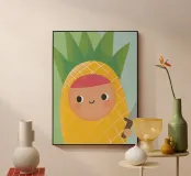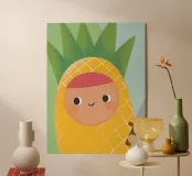 Illustrazione unica con un simpatico ananas che impugna una spada, pronto per un'allegra avventura tropicale.