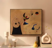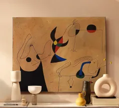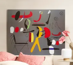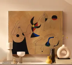 Joan Miró è stato un pittore, scultore e ceramista spagnolo nato a Barcellona nel 1893. Noto per il suo stile giocoso e fantasioso, Miró fondeva elementi del surrealismo, del dadaismo e dell'arte astratta. Le sue opere sono spesso caratterizzate da colori audaci, forme organiche e immagini oniriche che riflettono una profonda connessione con il subconscio. L'arte di Miró sfidava le tecniche tradizionali e ha ispirato intere generazioni con il suo senso di libertà e creatività. È considerato uno degli artisti più influenti del XX secolo.