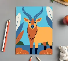 Lasciatevi conquistare dalla bellezza dell'antilope blu, unica nel suo genere, in questa coloratissima illustrazione.