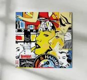 Le opere di Josh Ruggs guardano in modo satirico al sogno americano e a tutti i discorsi sociali, politici e culturali che vi ruotano attorno. Utilizza oggetti familiari di uso quotidiano, celebrità ed estetica comica, chiaramente nella tradizione della Pop Art, come strumenti per visualizzare queste narrazioni della cultura di massa, del consumo e del culto della personalità. Per creare le sue immagini multistrato, l'americano lavora con spray, pittura acrilica, olio, inchiostro e praticamente con ogni superficie che gli capiti sotto mano.