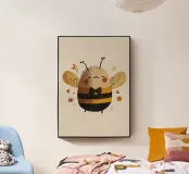 Decorazione murale per cameretta Bumblebee, graziosa illustrazione di ape con papillon, decorazione per cameretta bambini