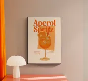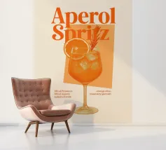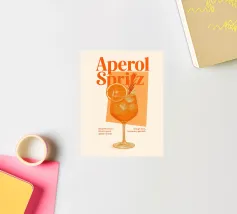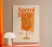 Elegante stampa d'arte di ispirazione rétro con la classica ricetta dell'Aperol Spritz, una tavolozza arancione e una tipografia vintage. Perfetta per cucine, bar, caffè o sale da pranzo. Ottimo regalo per gli amanti dei cocktail, gli intrattenitori e i fan della cultura italiana dell'aperitivo.