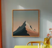 Una visione audace e mozzafiato della maestosità della natura. Questa opera d'arte minimalista cattura la vetta di una montagna in uno stile nitido e geometrico, dove piani sfaccettati di terracotta calda e verde acqua fredda definiscono la sua forma potente. Il sereno gradiente del cielo evoca la luce magica dell'alba o del tramonto, creando un senso di nitido e tranquillo stupore. Simbolo sofisticato di ambizione, concentrazione e raggiungimento dell'apice personale, questo pezzo porta un'energia pulita e stimolante in qualsiasi casa o ufficio moderno. Una dichiarazione di chiarezza e di scopo.