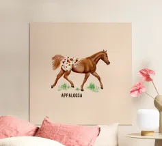 L'Appaloosa - un cavallo atletico e intelligente, con nervi forti e marcature del mantello uniche. Date un'occhiata anche alle altre razze di cavalli illustrate! Tutte le mie illustrazioni sono fatte a mano e curate nei minimi dettagli. Se necessario, è possibile modificare la disposizione degli elementi in base alle proprie esigenze.