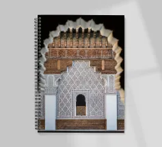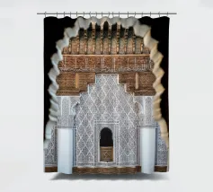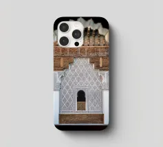 Arabic art. Looking through a small window to the other side of the building. Traditional details of Arabic architecture in a Madrasa in Morocco.