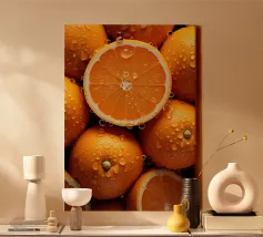arance agrumi arancia a fette gocce d'acqua buccia d'arancia buccia di frutta frutta succosa spicchi d'arancia prodotto fresco consistenza del frutto forma rotonda modello naturale agrumi arancia tagliata a metà vitamina C mangiare sano frutta tropicale polpa d'arancia scorza fascino visivo